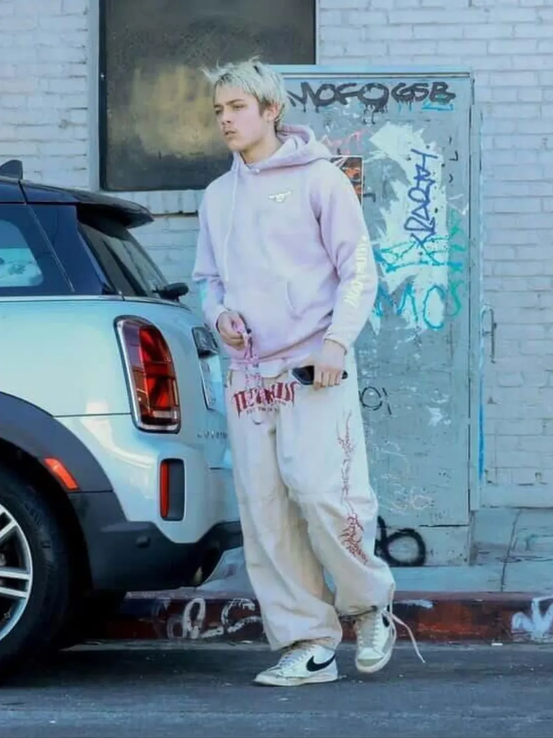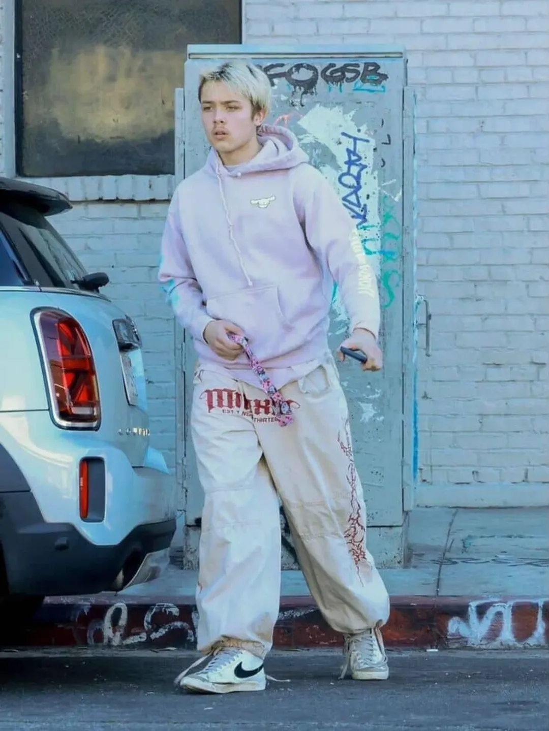 ნოქსის ჩაცმულობა კვლავ ფერადი იყო, ისევე როგორც მისი ახალი იმიჯი. ამ დღეს მას ღია ვარდისფერი ჰუდი და კრემისფერი წარწერებიანი შარვალი ეცვა.