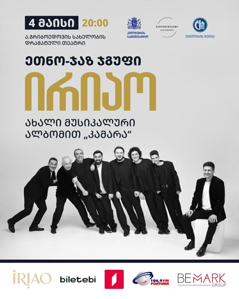 4 მაისს, თბილისის გრიბოედოვის სახელობის სახელმწიფო დრამატული თეატრის დიდ სცენაზე ეთნო-ჯაზ ჯგუფი „ირიაო“ წარმოგიდგნეთ რიგით მესამე ალბომის „კამარა“ პრეზენტაციას.