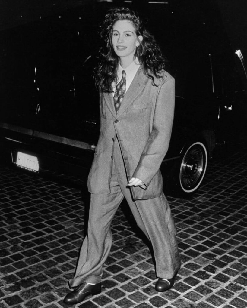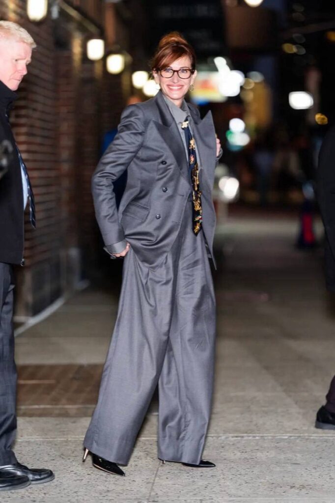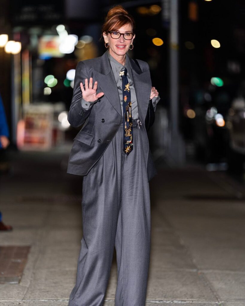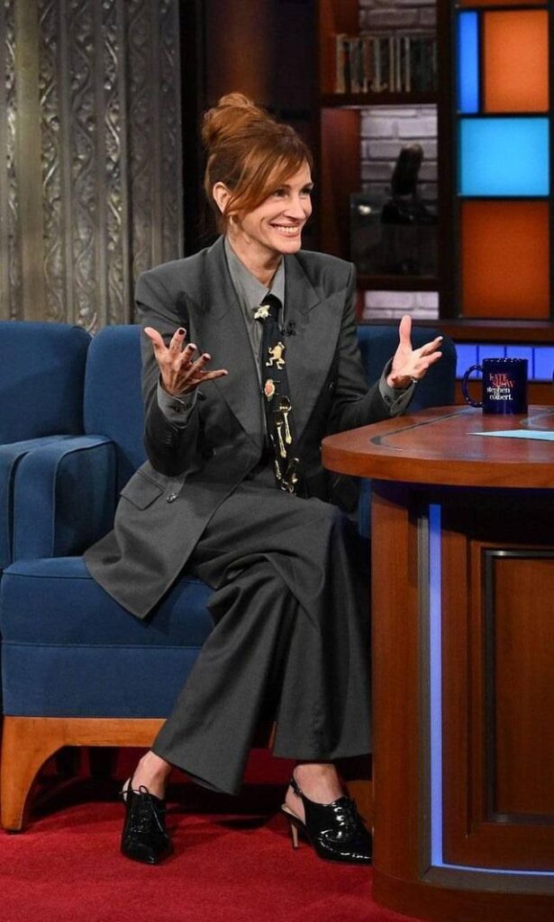 მსახიობმა ჯულია რობერტსმა 90-იანი წლების იმიჯი ხელახლა შექმნა. კინოვარსკვლავი სტივენ კოლბერტთან ერთად გადაცემაში The Late Show, ელეგანტურ შარვალ-კოსტიუმსა და ჰალსტუხში გამოჩნდა.