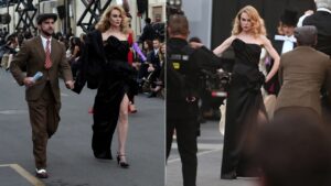 ლონგორიამ, რომელმაც ბოლო დროს შესამჩნევად მოიმატა წონაში, აქცენტი შავზე გააკეთა. „რალფ ლორენის“ დიდი ზომის ატლასის პიჯაკი და შარვალი ლონგორიას მასიური ტყავის ქამრით ჰქონდა ფიქსირებული. აქსესუარის სახით კი ანსამბლს ძალიან მოუხდა მასიური მბზინავი საყურე, რომელიც ევას ერთადერთი ძვირფასი აქსესუარი იყო.