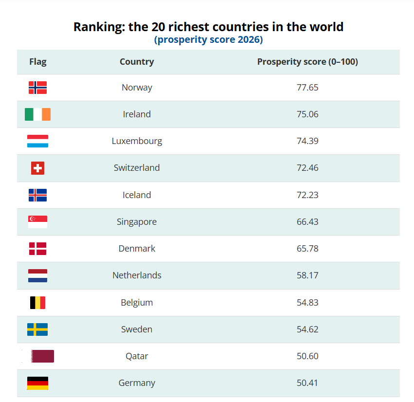 ახალი კვლევა აჩვენებს, რომ თანამედროვე ეკონომიკაში „სიმდიდრე“ მხოლოდ GDP-ით აღარ იზომება. ქვეყნები, რომლებიც ტრადიციულად ლიდერობდნენ ეკონომიკური მოცულობით, შესაძლოა ჩამორჩნენ იმ ქვეყნებს, სადაც მოსახლეობის კეთილდღეობა და ცხოვრების ხარისხი უფრო მაღალ დონეზეა.