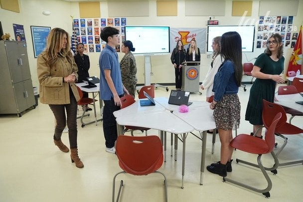 მელანიამ და უშამ აღმოსავლეთ სანაპიროზე საზღვაო ქვეითთა ​​​​კორპუსის უდიდეს ბაზაზე, კემპ ლეჟენში, სამხედრო მოსამსახურეები და ამავე ტერიტორიაზე მდებარე საზღვაო ქვეითთა ​​​​კორპუსის საჰაერო ბაზა „ნიუ რივერი“ მოინახულეს.