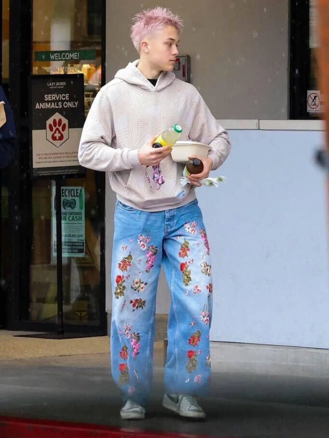 ნოქსი ლოს-ანჯელესის ქუჩებში მეგობართან ერთად სეირნობის დროს გადაიღეს. მას ყვავილებიანი ჯინსის შარვალი და ჰუდი ეცვა, მის „ლუქს“ ვარდისფერი თმა ასრულებდა.