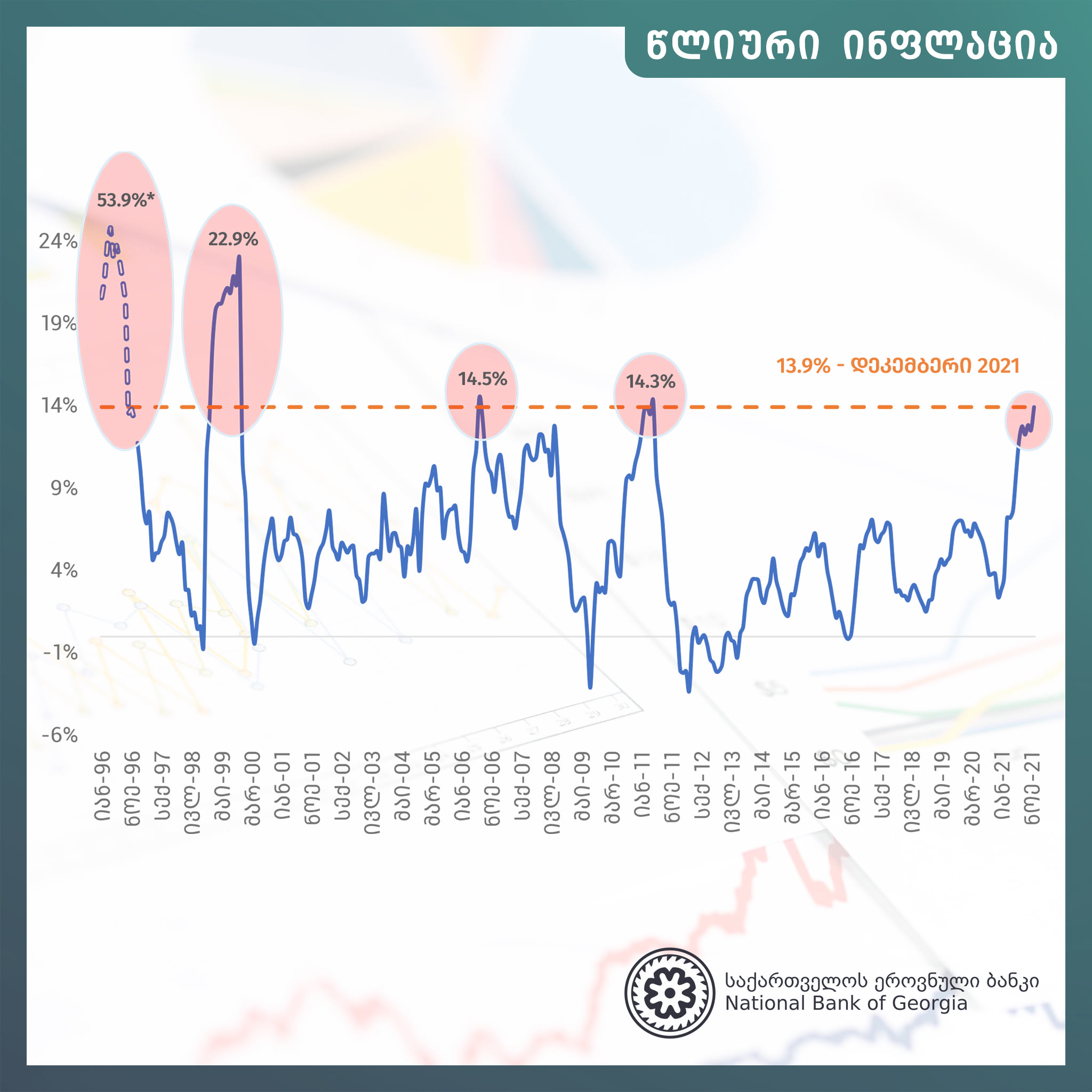 „ეს პოსტი არ არის მაღალი ინფლაციის ნეგატიურ გავლენაზე, რის შესახებაც ეროვნულ ბანკსაც არაერთხელ უსაუბრია. ისიც ვთქვით, რომ დეკემბრის თვეში წლიური ინფლაციის ზრდის ტენდენცია შენარჩუნდებოდა და ამის მიზეზებსა და გავლენის შესარბილებლად ეროვნული ბანკის ღონისძიებებზეც არაერთხელ ვისაუბრე. პოსტი ე.წ. „რიცხვების წვალებას“, არასწორი ინფორმაციის გავრცელებასა და საზოგადოებრივი აზრის მანიპულირებას ეხება: თითქოს 2021 წლის დეკემბერში წლიური ინფლაცია ბოლო 26 წლის რეკორდულ ნიშნულზეა. ინფლაციის სტატისტიკის ასე წარმოდგენა, რბილად რომ ვთქვათ, შეცდომა ან რაც გაცილებით უარესი – მოსახლეობის შეცდომაში შეგნებულად შეყვანის მცდელობაა.