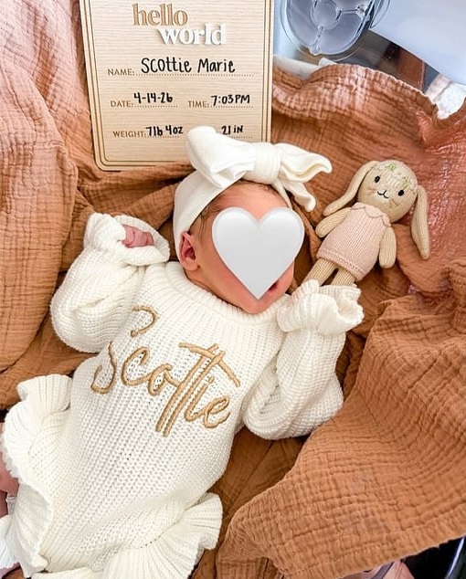 ალაინამ ფოტო სოციალურ ქსელში გაავრცელა და გამომწერებს შვილის პირველი ფოტოებიც გაუზიარა. ჩვილი სპეციალურად მოქსოვილ კომბინეზონში იყო გამოწყობილი, რომელზეც მისი უჩვეულო სახელი ეწერა. წყვილმა გოგონას სკოტი მარი მოლერი დაარქვა.