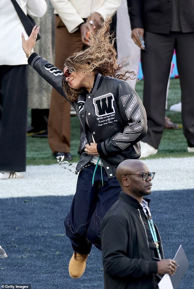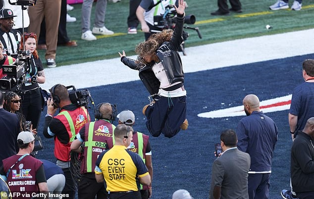 ბლუ აივიმ Super Bowl-ის ტრადიცია არ დაარღვია და VIP ზონაში ყოფნისას მოედანზე მხიარული ნახტომიც შეასრულა, ზუსტად ისე, როგორც ამას ყოველწლიურად აკეთებს.