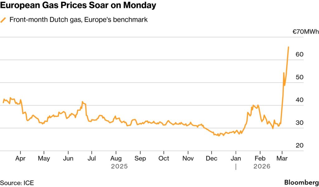 Bloomberg-ის ინფორმაციით, ევროპაში ბუნებრივი გაზის ფასი მკვეთრად გაიზარდა და სავაჭრო სესიის გახსნისთანავე დაახლოებით 30%-ით მოიმატა. შედეგად, ფასმა მეგავატ-საათზე 69,50 ევროს მიაღწია – რაც ენერგეტიკულ ბაზრებზე ახალი დაძაბულობის სიგნალად მიიჩნევა.