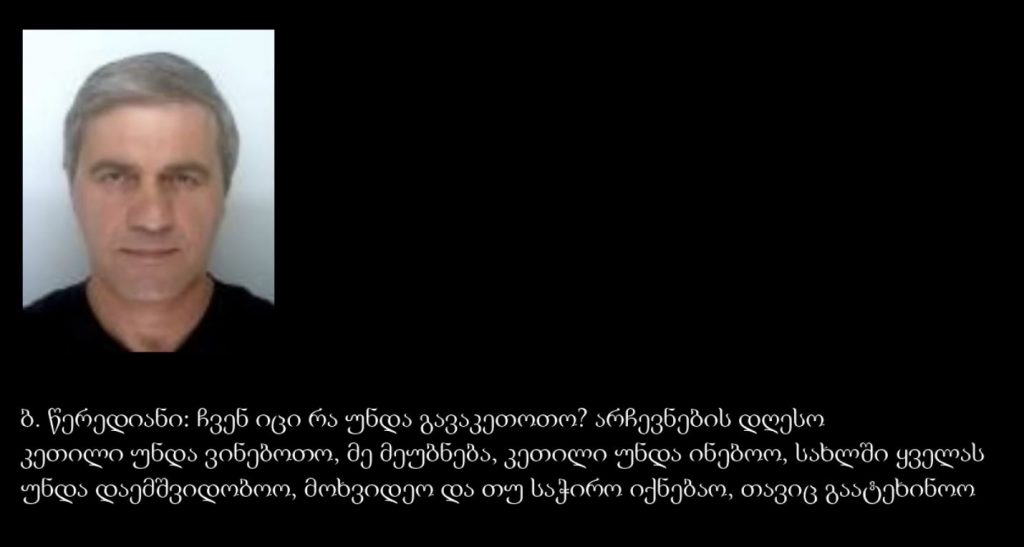 პოლიტიკა ვიდეო: ჩვენ მაინც მაიდანი მოგვიწევს ბოლო, იმიტომ, რომ ესენი არჩევნებით არსად არ წავლენ – სუს-ი აუდიოჩანაწერებს აქვეყნებს, სადაც ხელისუფლების დამხობის მიზნით შეთქმულების ფაქტზეა საუბარი 29 ოქტომბერი, 2021 სუს-ის ინფორმაციით, ჩანაწერში ბ. წერედიანი, ა. მილორავა და დაუდგენელი პირები ფიგურირებენ.