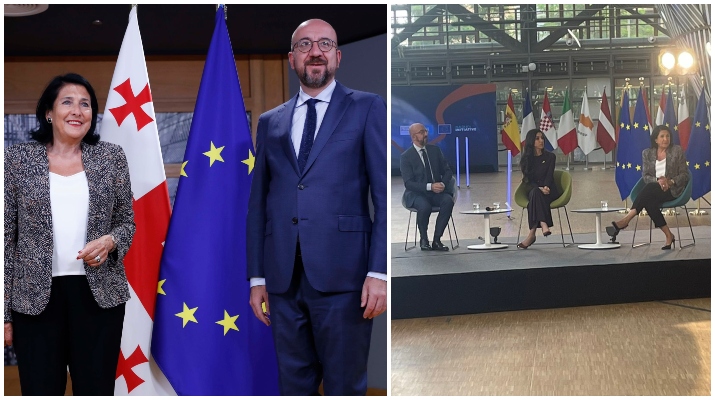 პოლიტიკა სალომე ზურაბიშვილი ბრიუსელშია: პრეზიდენტი შეხვედრას შარლ მიშელთან მართავს სოფო ნამორაძე 9 ივნისი, 2022 სალომე ზურაბიშვილი ბრიუსელში, ევროპული საბჭოს პრეზიდენტ შარლ მიშელის მიწვევით, დღეს მონაწილეობას მიიღებს კონფერენციაში „ქალები კონფლიქტებში“.