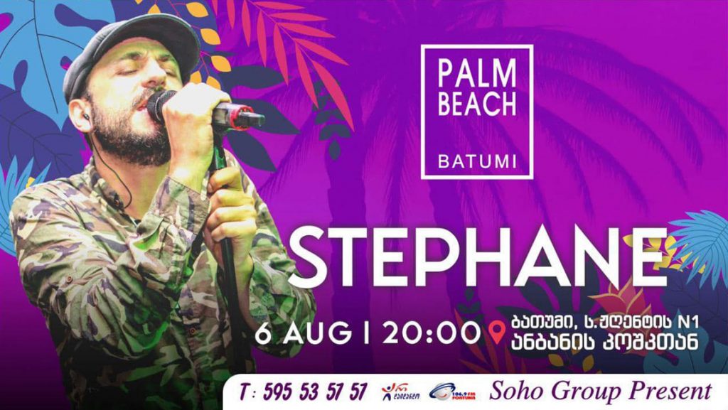შოუბიზნესი სიახლეები 6 აგვისტოს ბათუმის PALM BEACH სტეფანეს კონცერტს წარმოგიდგენთ 6 აგვისტო, 2021 ბათუმში მდებარე კლუბი PALM BEACH („პალმა ლაგუნა“) 6 აგვისტოს სტეფანეს უმასპინძლებს