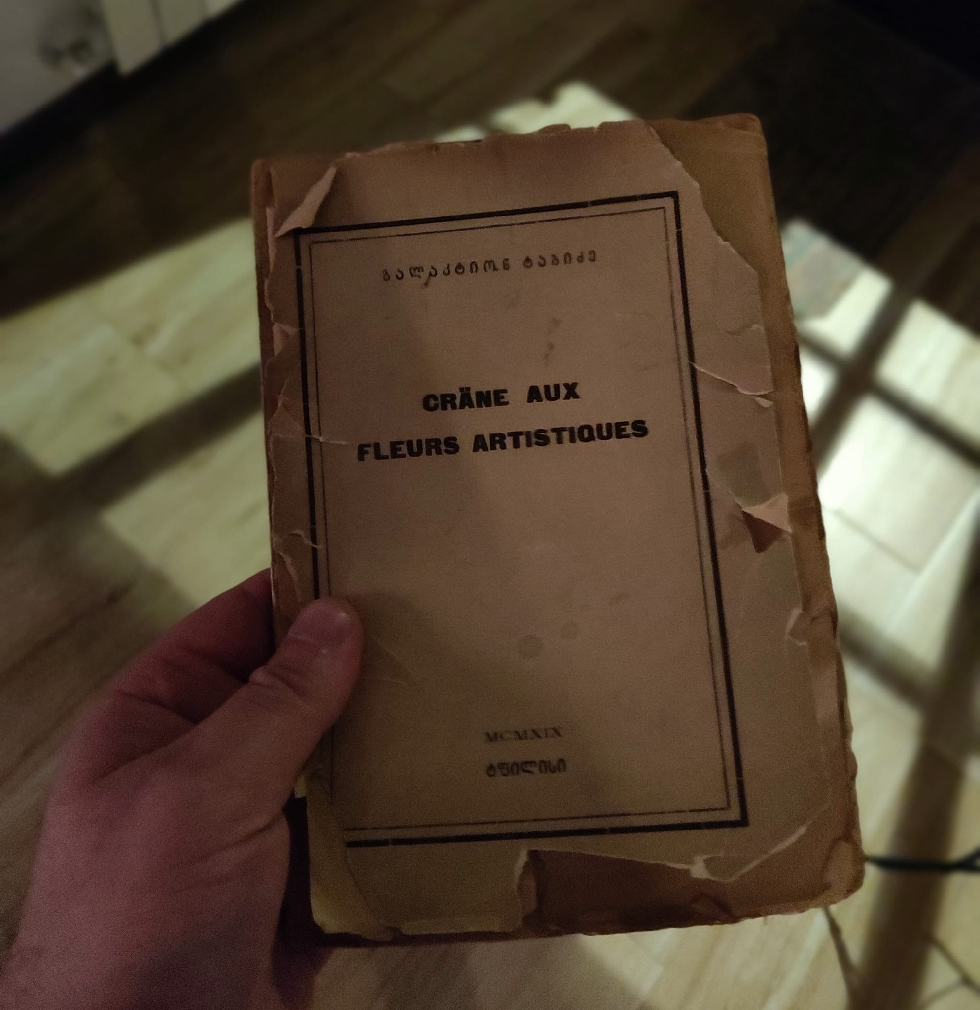 „ეს მეოცე საუკუნის ყველაზე მნიშვნელოვანი ქართული პოეტური კრებულის ორიგინალია. გალაკტიონ ტაბიძე – ,,თავის ქალა არტისტული ყვავილებით” – 1919 წელი. დღეს მაჩუქა ეროვნული ბიბლიოთეკის თანამშრომელმა, ნინო გედენიძემ.