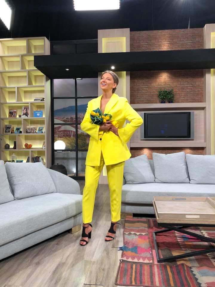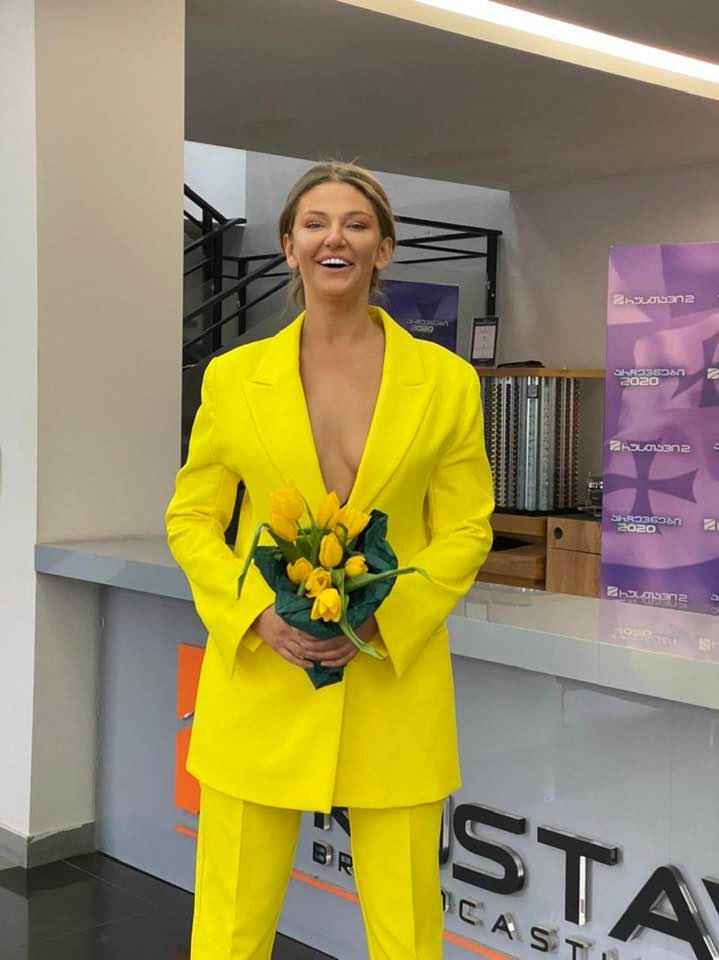 ტელეწამყვანმა ანი გიუნტერმა სამსახურში, „რუსთავი 2“-ში გადაღებული ფოტო გამოაქვეყნა, სადაც ის ულამაზეს ყვითელ ორეულში პოზირებს. მას ერთი და იმავე ფერის პიჯაკი და შარვალი აცვია, ხელში კი ყვავილების თაიგული უკავია. „დავბრუნდი სამსახურში“, აღნიშნავს ტელესახე, დილის გადაცემის წამყვანი, რომელსაც ფოტო კოლეგამ, ავთო გვასალიამ გადაუღო.