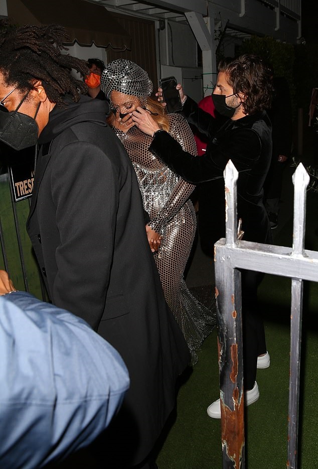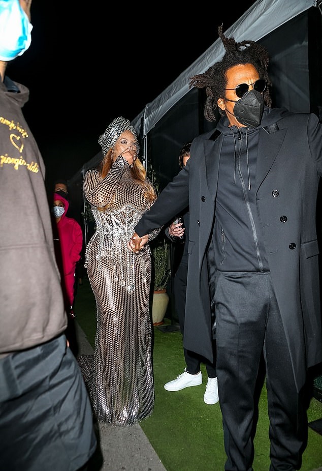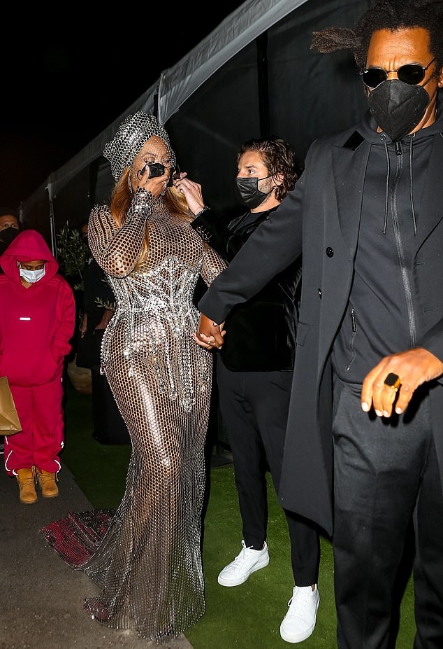 2021 წლის „გრემის“ უპირობო ლიდერი, ბიონსე ცერემონიალის „ავთერ ფართიზე“ მეუღლესთან, რეპერ ჯეი-ზისთან ერთად გამოჩნდა. საზოგადოების ყურადღება მისმა გამორჩეულმა ჩაცმულობამ მიიქცია. 39 წლის ვარსკვლავს ვერცხლისფერი, გამჭვირვალე „ჯაჭვის პერანგი“ ეცვა, სახეზე კი ჩადრი ჰქონდა ჩამოფარებული.