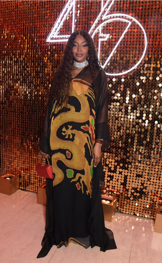 ლეგენდარული ტოპ-მოდელი, ნაომი კემპბელი, ლონდონში კლუბ Annabe-ში მეგობარ ვარსკვლავებთან ერთად გადაიღეს. გასართობად წასულმა მოდელმა საკმაოდ უჩვეულო „ლუქზე“ შეაჩერა არჩევანი. 51 წლის კემპბელს დრაკონის პრინტიანი, ცეცხლოვანი, აბრეშუმის კაბა ამშვენებდა.