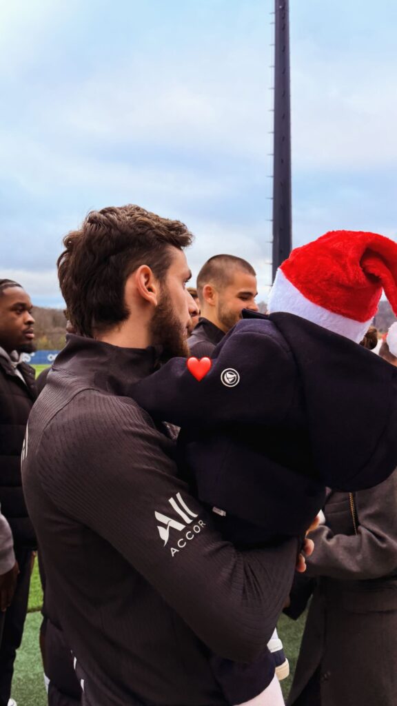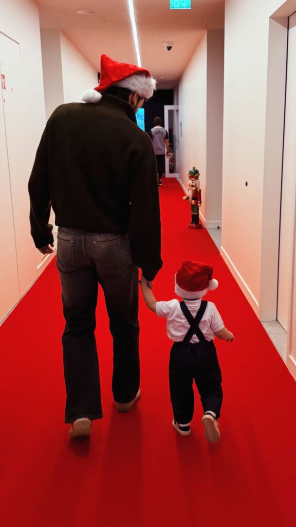ფოტოებში უსაყვარლეს მამა-შვილს, სანტას ქუდები ახურავთ და მათი დანახვა დადებით განწყობას გვიქმნის.
