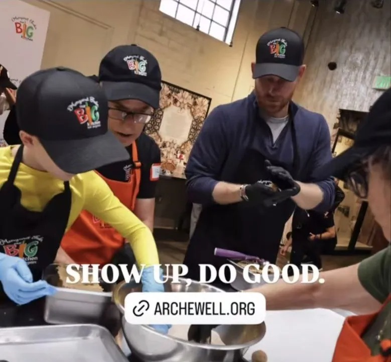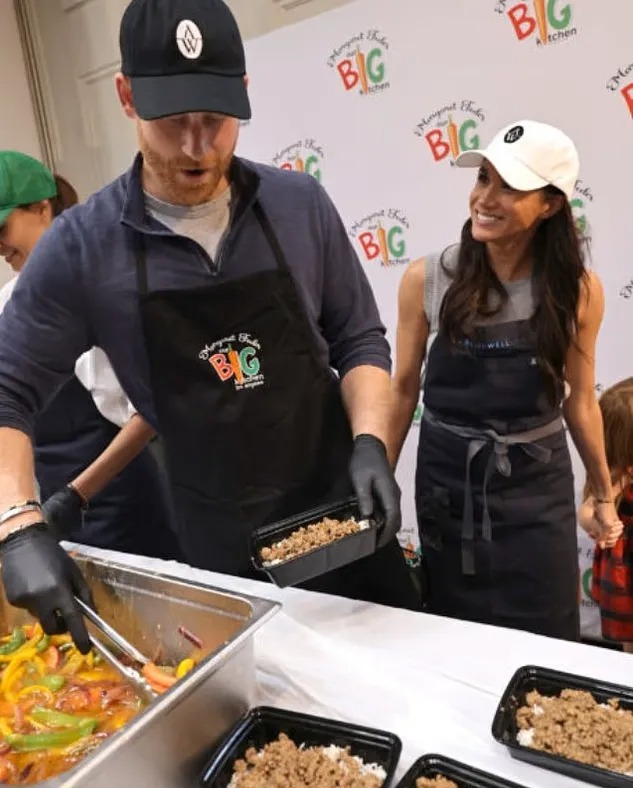 44 წლის მეგანმა და 41 წლის ჰარიმ ლოს-ანჯელესში მდებარე საზოგადოებრივი სამზარეულო Our Big Kitchen მოინახულეს. ეს გახლავთ ცენტრი, რომელიც მცირე შემოსავლის მქონე ადამიანებს საკვებით ამარაგებს.