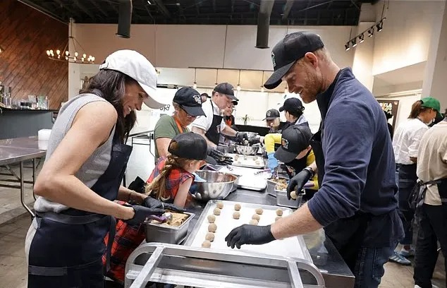 მეგანმა „ინსტაგრამ სთორიში“ გააზიარა რამდენიმე ფოტო, სადაც ის და ჰარი სხვა მოხალისეებთან ერთად ამზადებენ კერძებს, ალაგებენ სასურსათო კონტეინერებს და მონაწილეობენ საერთო სამზადისში.