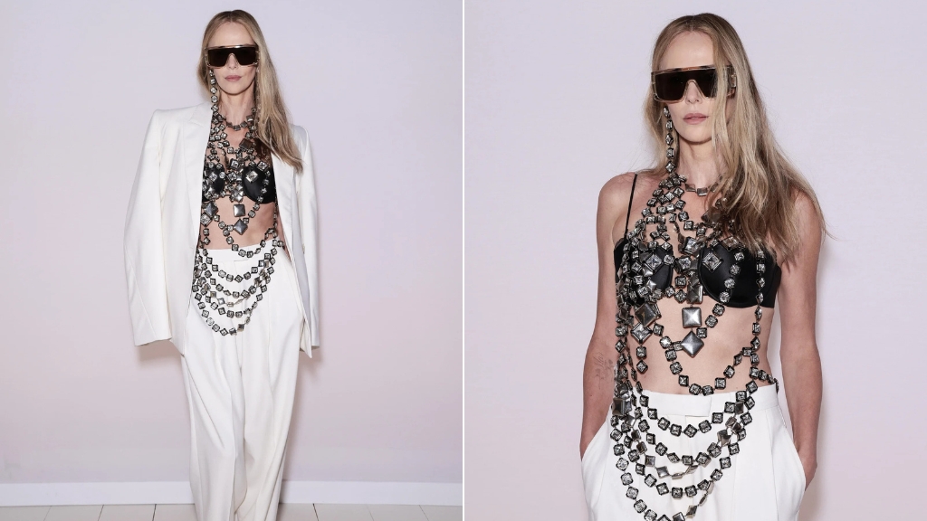 ეკოს ვარდისფერი კაბა აცვია და ძალიან კარგად გამოიყურება.