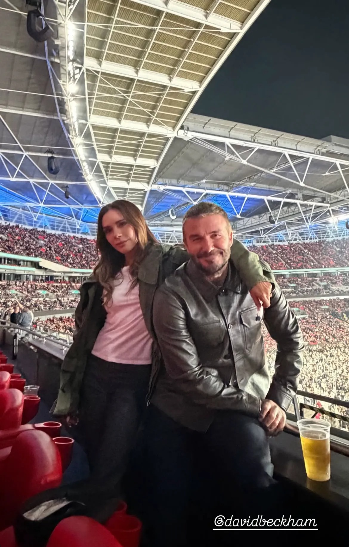 ვიქტორია და დევიდ ბექჰემი შვილებთან, რომეოსთან, კრუზთან და ჰარპერთან ერთად ლონდონის „უემბლის“ სტადიონზე ჯგუფ, Oasis-ის გრანდიოზულ კონცერტს დაესწრნენ.