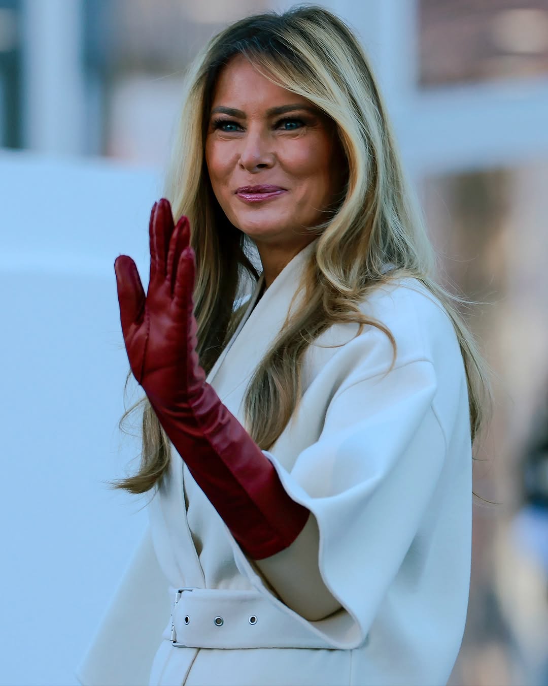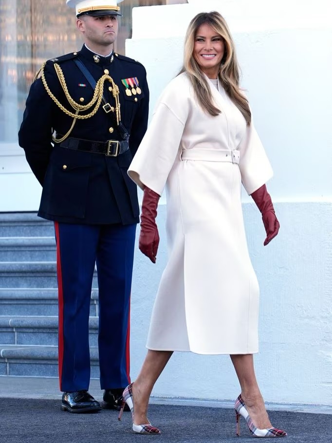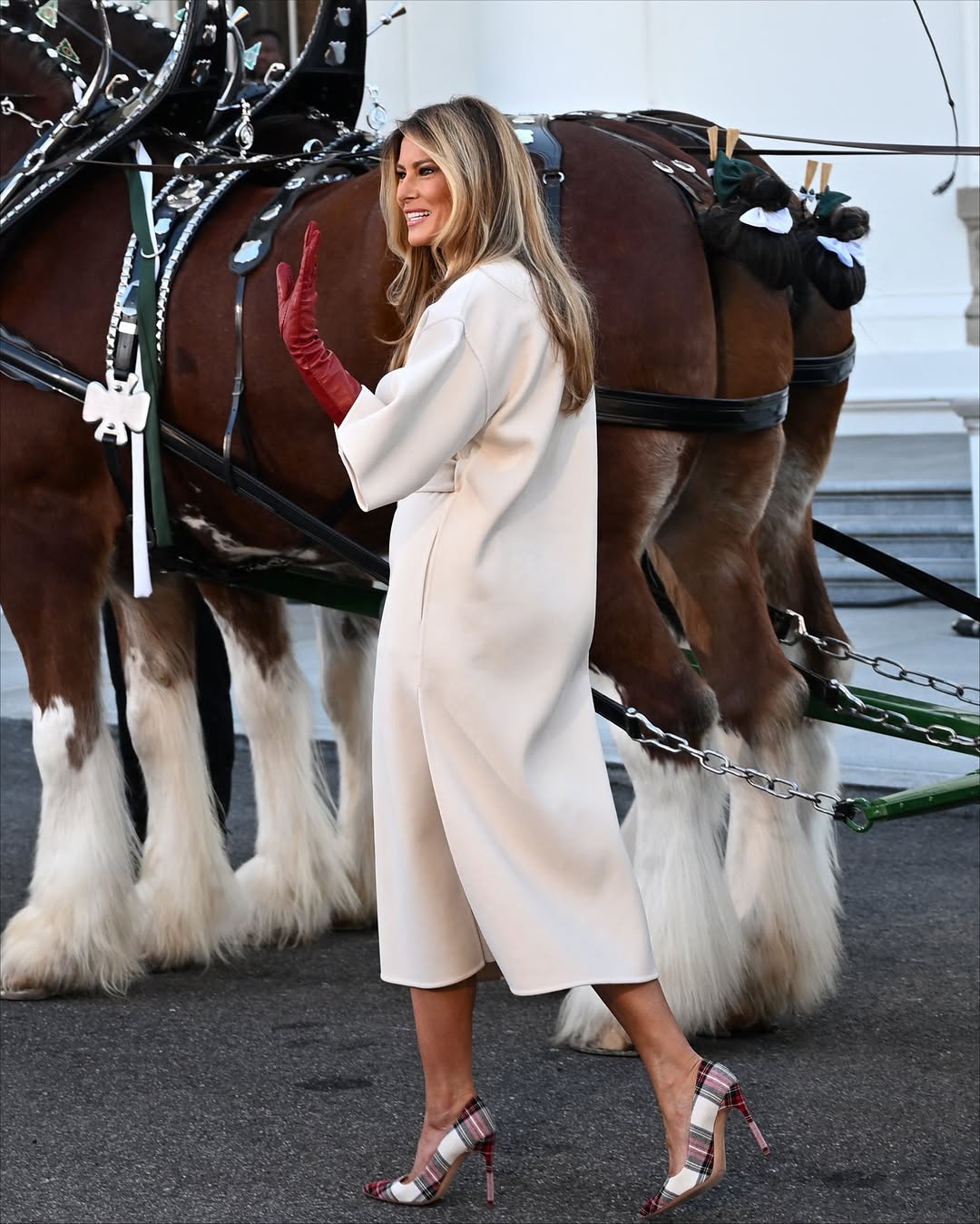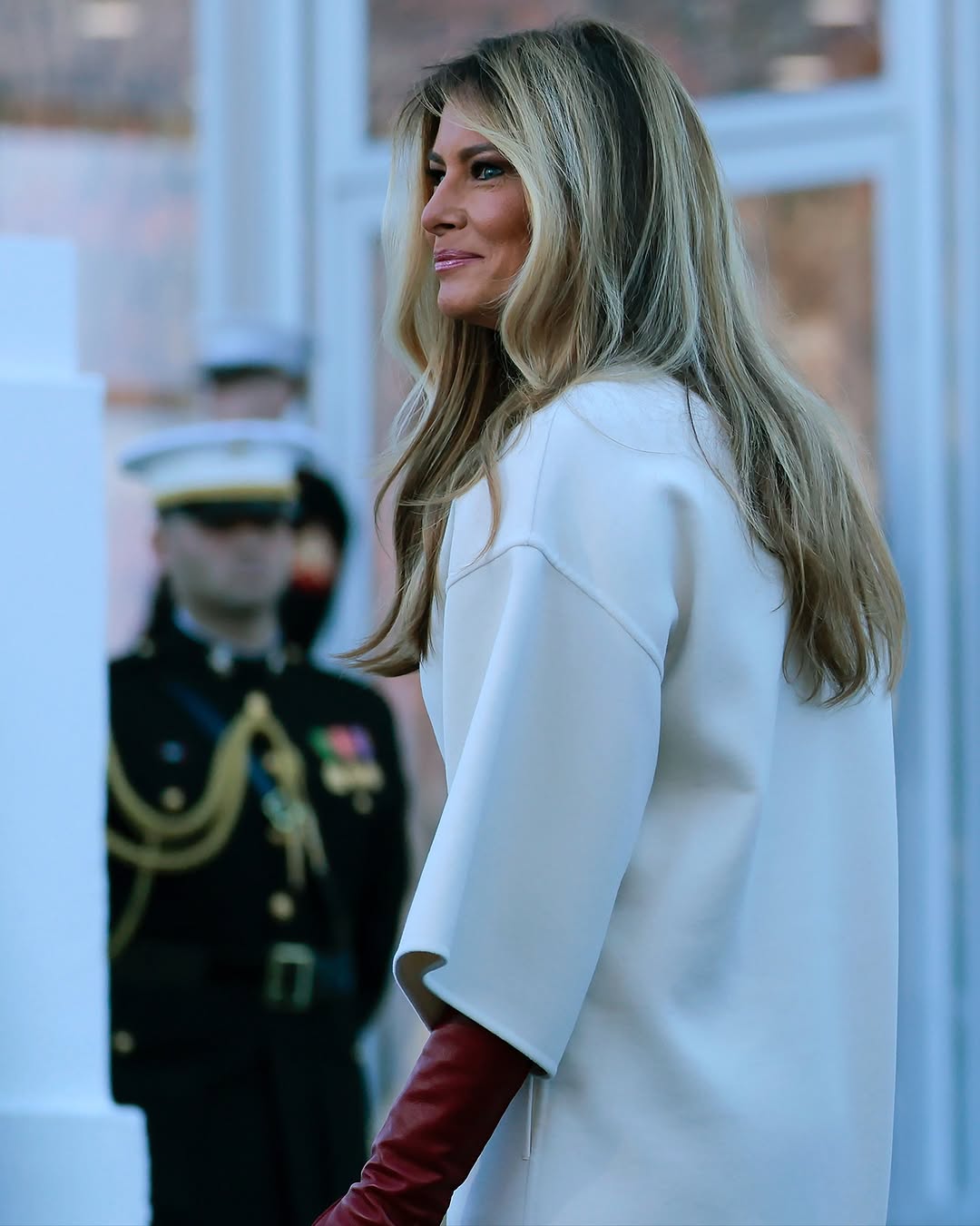 მშვენიერი მელანია ტრამპი დიდი ზომის ორეულში, თეთრ სახლში გამართულ მიღებაზე