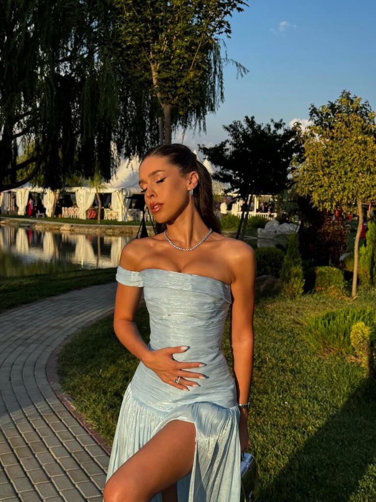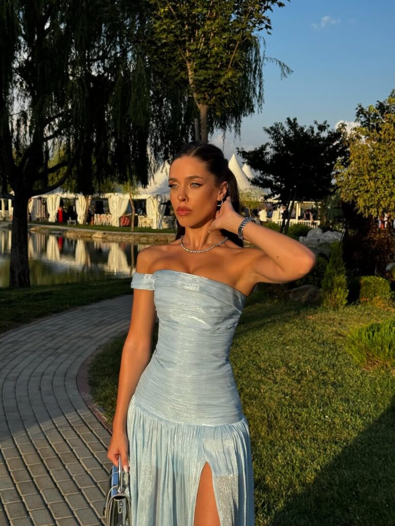ნუცა თოფურიამ ულამაზესი, ცისფერი კაბა მოირგო.