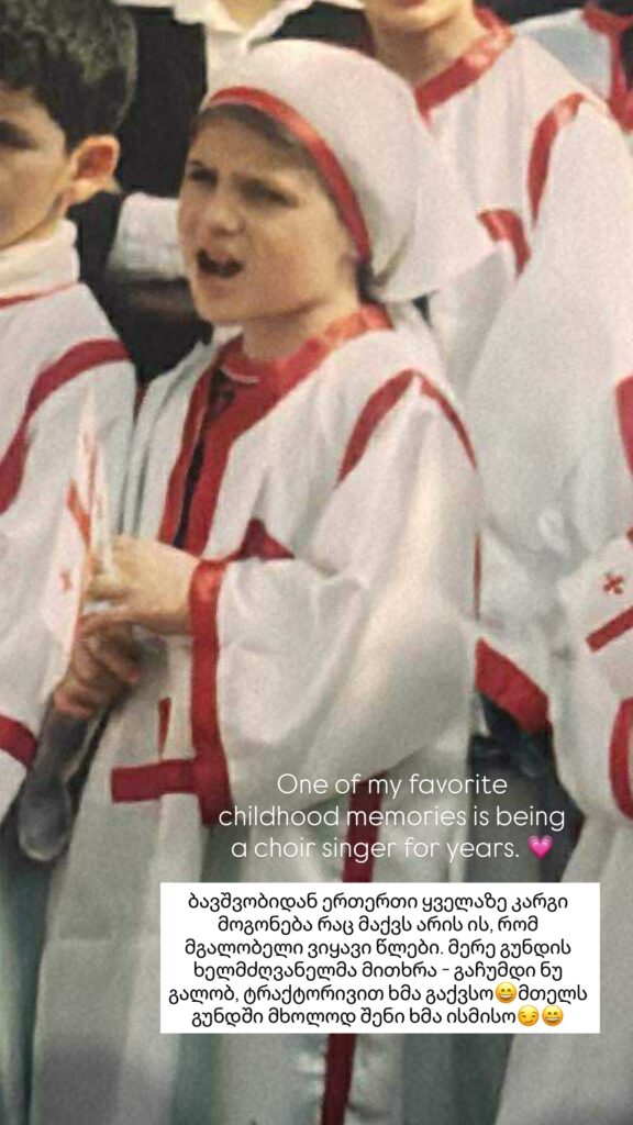 „ბავშვობიდან ერთ-ერთი ყველაზე კარგი მოგონება რაც მაქვს არის ის რომ მგალობელი ვიყავი წლები. მერე გუნდის ხელმძღვანელმა მითხრა – გაჩუმდი, ნუ გალობ, ტრაქტორივით ხმა გაქვსო. მთელს გუნდში მხოლოდ შენი ხმა ისმისო“, – გვიყვება მალიბუ.