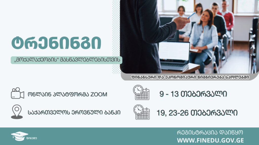 ტრენინგს საქართველოს ეროვნული ბანკის ფინანსური განათლებისა და სტრატეგიული განვითარების დეპარტამენტის თანამშრომლები გაუძღვებიან.