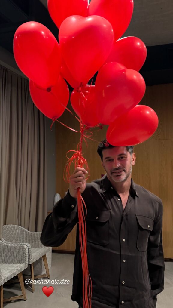 კახა კალაძემ მეუღლეს სიყვარულის დღეს წითელი ვარდების თაიგული მიართვა.