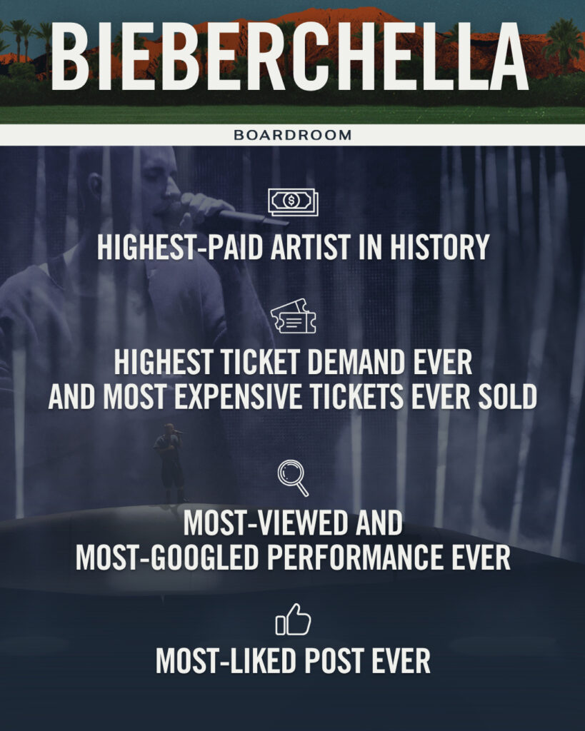 ბიბერის დაბრუნების გამო, 2026 წლის ფესტივალზე დასასწრები ბილეთები პოსტ-პანდემიურ ეპოქაში ყველაზე სწრაფად, 3 დღეში გაიყიდა, ხოლო ბილეთების ფასმა მეორეულ ბაზარზე რეკორდულ 3,481 დოლარს მიაღწია.