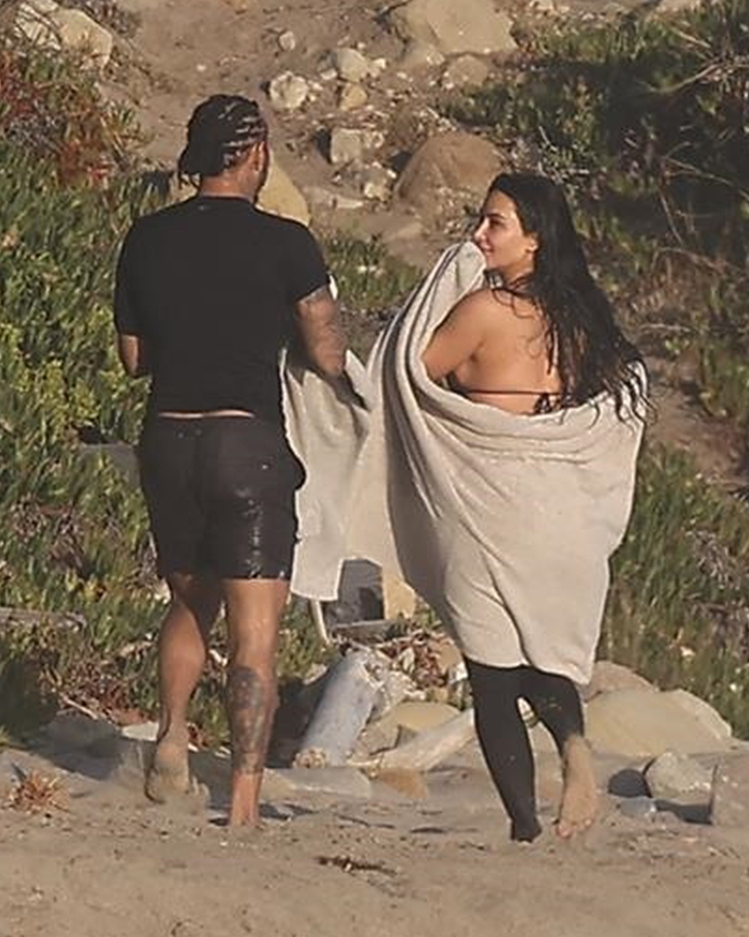 წყვილი მალიბუს სანაპიროზე დააფიქსირეს, სადაც ისინი ტალღებზე სერფინგით სრიალებდნენ, ერთმანეთის კოცნიდნენ, ეხუტებოდნენ და სითბოს საჯაროდ გამოხატავდნენ.