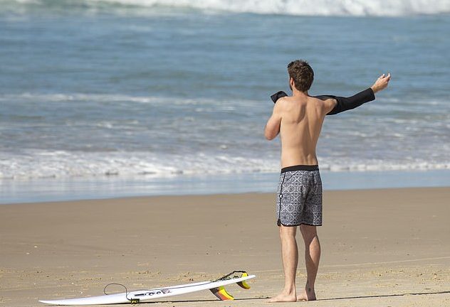 კრის ჰემსვორტის თაყვანისმცემლებისთვის ცნობილი ფაქტია, რომ 35 წლის მსახიობი სერფინგის დიდი მოყვარულია, რის გამოც პაპარაცები მას ხშირად ოკეანის სანაპიროზე იღებენ.