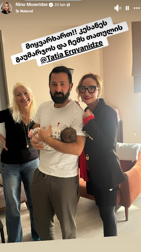ახალბედა მშობლების და პატარა კესანეს მორიგ ერთობლივ ფოტოს სოციალურ ქსეკში ამჯერად ექიმი, რეპროდუქტოლოგი ნინო მუსერიძე აქვეყნებს და წერს:
