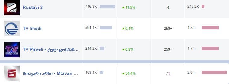 „სტატისტიკა, რომელიც უნდა იცოდეთ. გუშინ, სოციალურ მედიაში “მთავარ არხს უყურა 2 მილიონ 600 ათასმა ადამიანმა. იმედს მილიონ 800 ათასმა, ტვ პირველს მილიონ 700 ათასმა და რუსთავს 249 ათასმა.