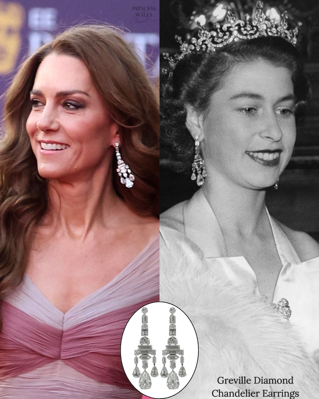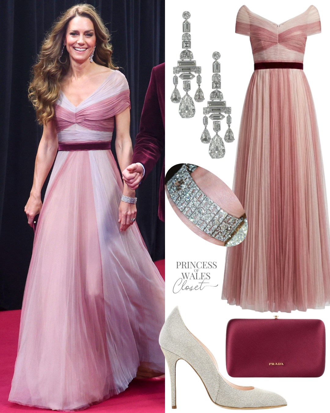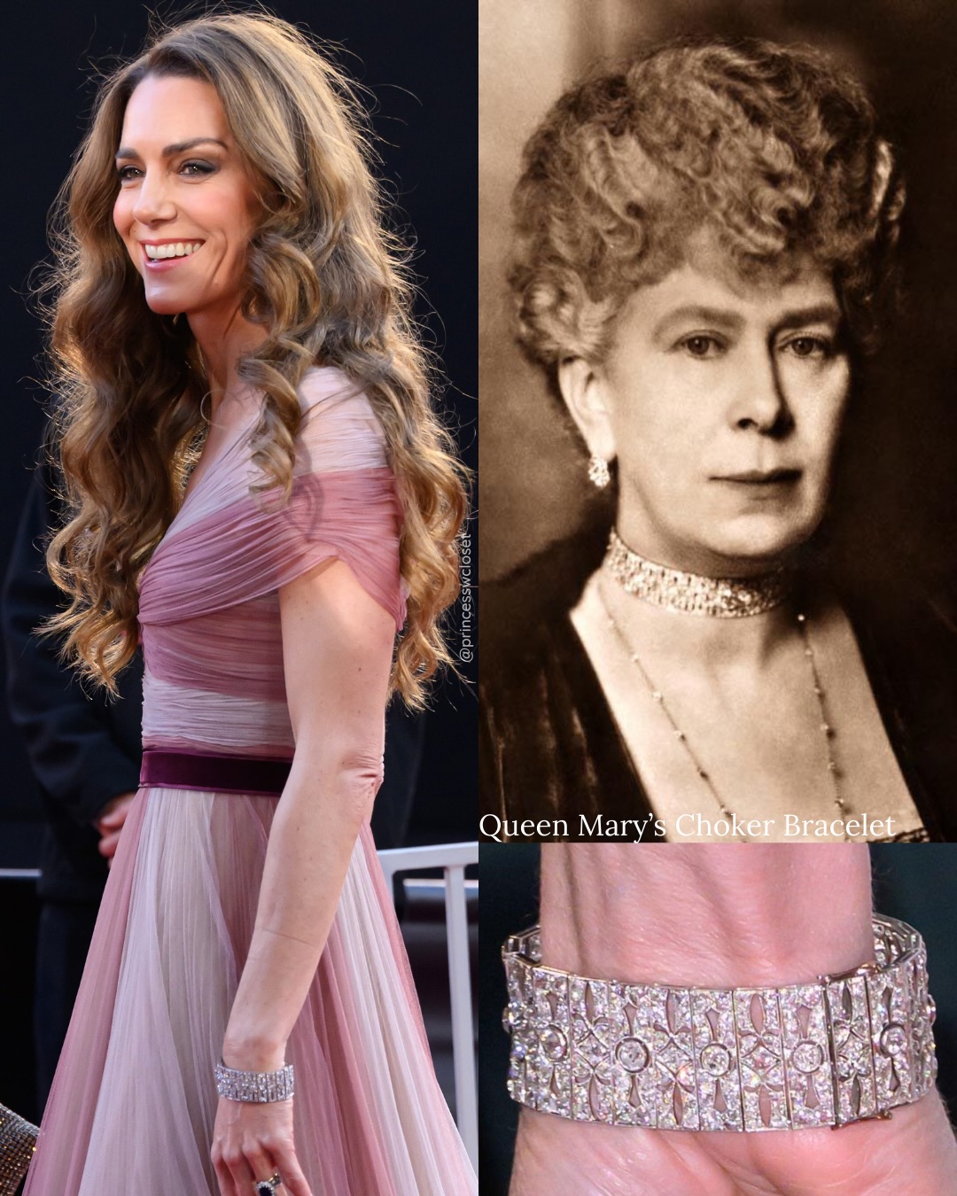 იმიჯი გამორჩეული იყო შთამბეჭდავი სამკაულებითაც. ქეითმა ისტორიული, Greville Diamond Chandelier, ბრილიანტის გრძელი საყურეები მოირგო სამეფო კოლექციიდან, მას ასევე ეკეთა Queen Mary’s Choker, რომელიც თავდაპირველად ყელსაბამი იყო და მოგვიანებით სამაჯურად გადაკეთდა.