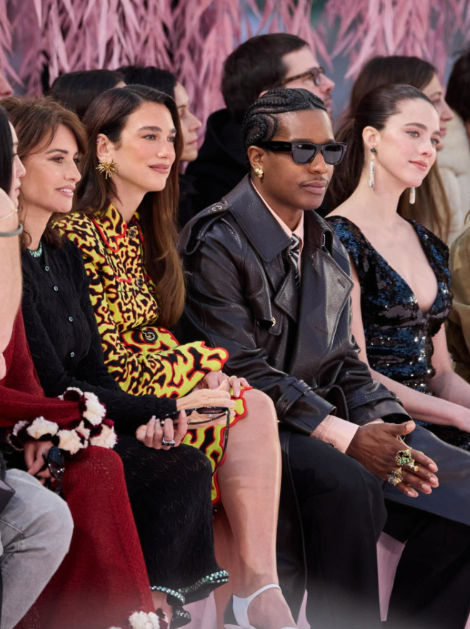 პოდიუმის წინა რიგებში თავი ბრენდის ამბასადორებმა და სხვა მოწვეულმა ცნობილმა სახეებმა მოიყარეს. მათ შორის იყვნენ – პენელოპე კრუსი, დუა ლიპა, ASAP Rocky და მარგარეტ ქუალი.