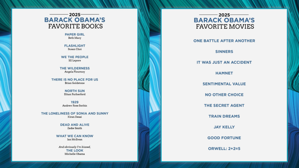 ამერიკის ყოფილმა პრეზიდენტმა, ბარაკ ობამამ 2025 შეაჯამა. მან ქსელში ტრადიციული, წლის შემაჯამებელი რეიტინგები გამოაქვეყნა, სადაც თავი ფავორიტ სიმღერებს, წიგნებსა და ფილმებს მოუყარა.