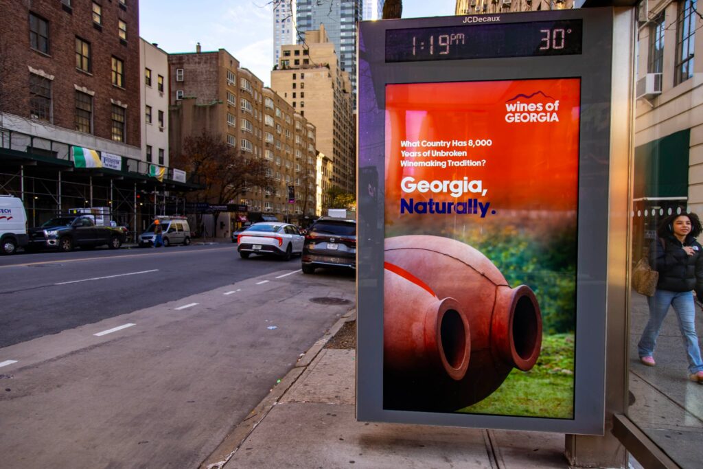 ღვინის ეროვნული სააგენტოს ფინანსური მხარდაჭერით და სააგენტოს კონტრაქტორი ამერიკული მარკეტინგული კომპანიის „Colangelo & Partners” ორგანიზებით, აშშ-ში ქართული ღვინის მარკეტინგული კამპანიის ფარგლებში, ქალაქ ნიუ-იორკში, მანჰეტენზე, ავტობუსის 18 გაჩერებაზე სარეკლამო „ლაით-ბოქსებში“ ბანერები განთავსდა.