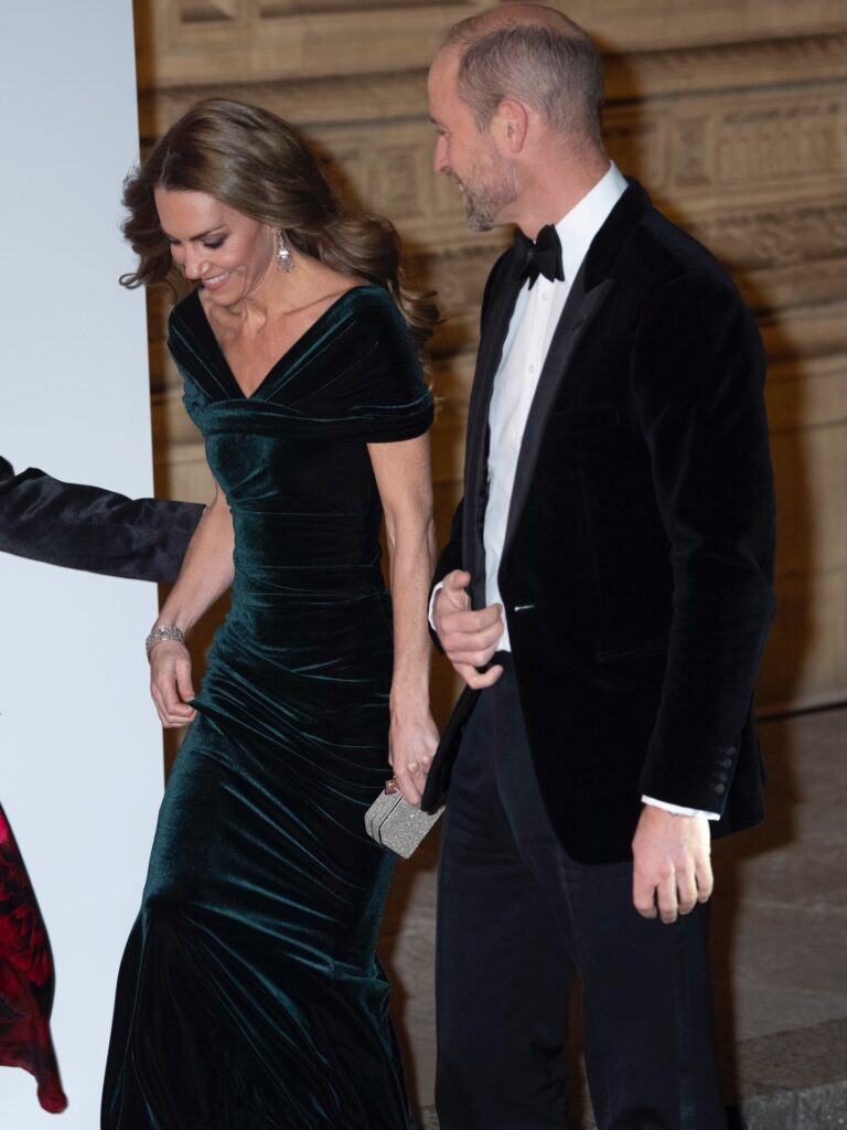 საღამოს გასვლისთვის, 43 წლის უელსის პრინცესამ Talbot Runhof-ის ზურმუხტისფერი ხავერდის კაბა შეარჩია, რომელიც „ჯენი პეკჰამის“ მბზინავ კლატჩთან და ქუსლიან ფეხსაცმელთან ერთად შეუხამა. მან თავისი ლუქი დაასრულა „კარტიეს“ ბრილიანტის საყურეებით, რომლებიც ოდესღაც დედოფალ ელისაბედს ეკუთვნოდა. პრინც უილიამს შავი ხავერდის სმოკინგი ეცვა.