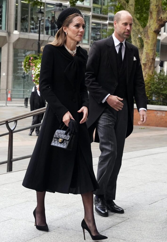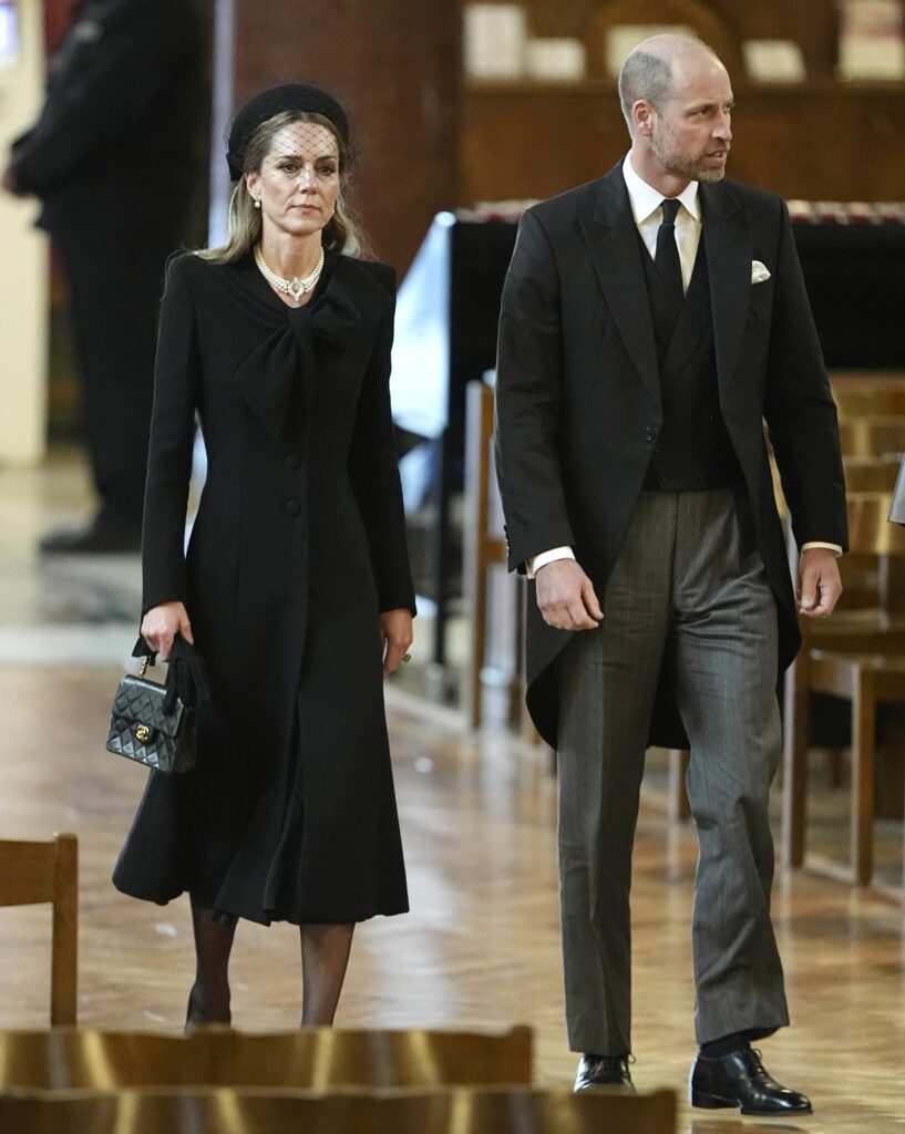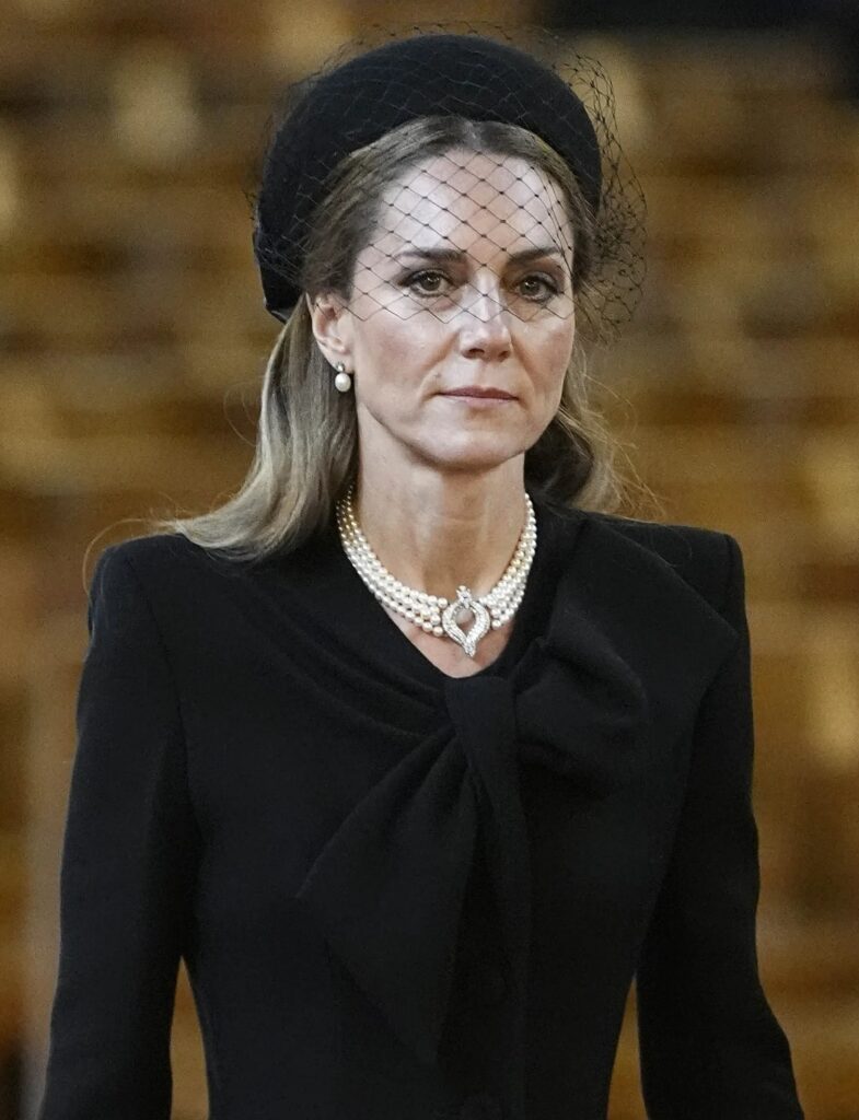 ქეით მიდლტონი საჯაროდ შავი სამგლოვიარო კაბით გამოჩნდა, ანსამბლს კი „შანელის“ ჩანთა, ვუალით დაფარული ქუდით და მარგალიტის ყელსაბამი შეუხამა, რომელიც ადრე გარდაცვლილ დედოფალ ელისაბედს ეკუთვნოდა. უელსის პრინცესამ ეს ყელსაბამი 2022 წელს თავად დედოფლის დაკრძალვაზე, ასევე 2021 წელს პრინცი ფილიპის დაკრძალვაზე გამოაჩინა.