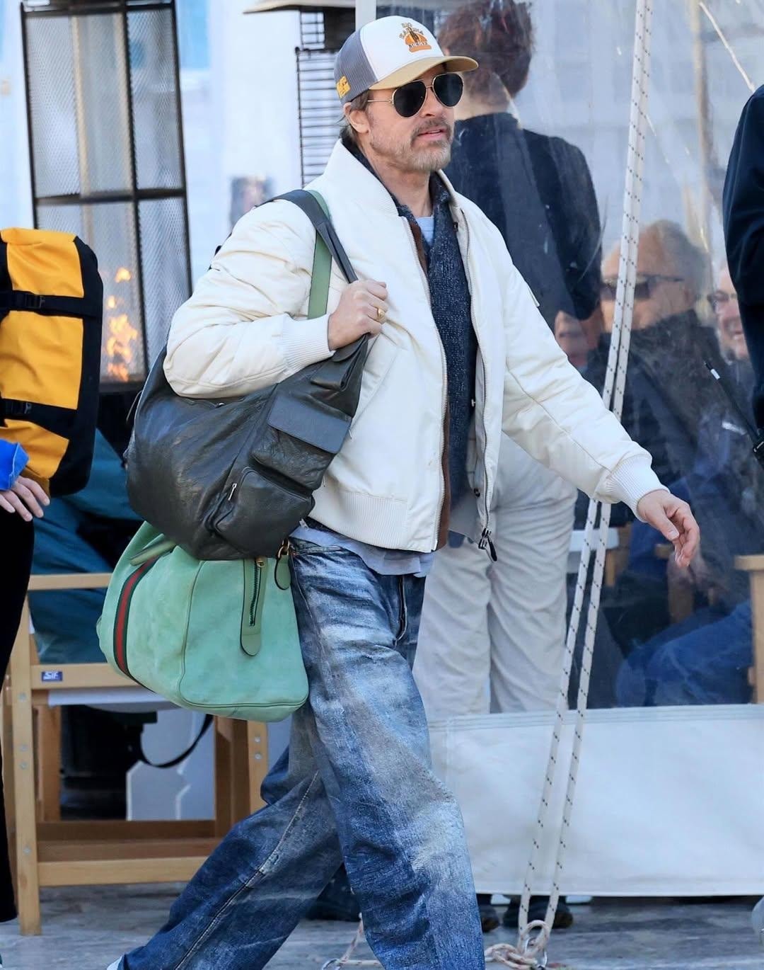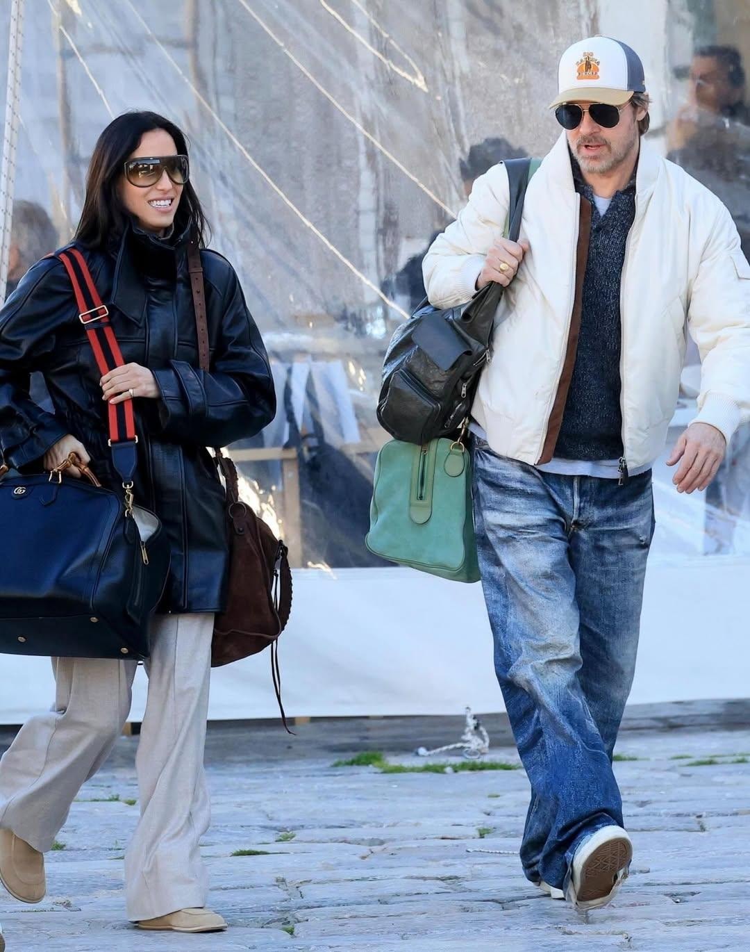 რაც შეეხება ბრედის „ლუქს“, მას თავისუფალი სტილის შარვალი და ქურთუკი ეცვა, ინესიც კომფორტულ სამოსში იყო გამოწყობილი.