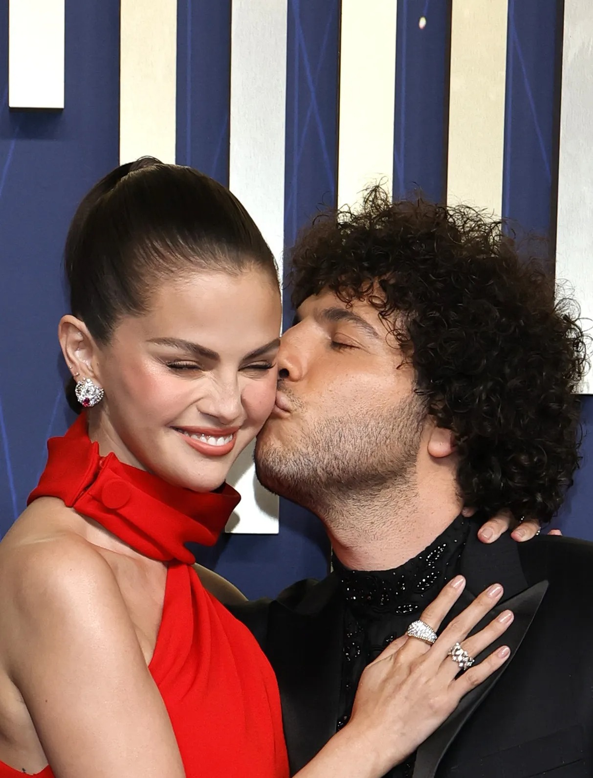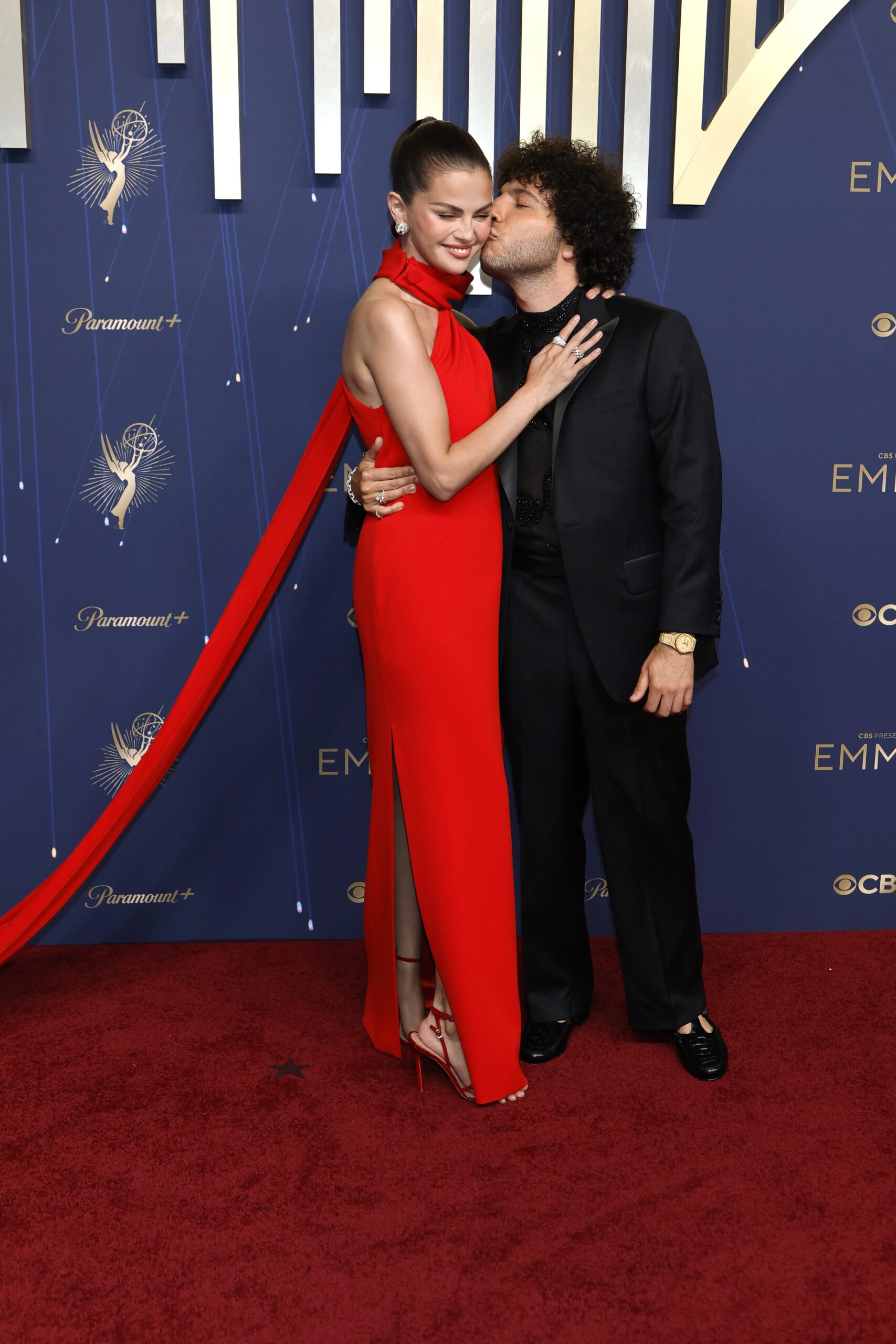 სელენა გომესი Emmy 2025-დაჯილდოების წითელ ხალიჩაზე გასაოცარი „ლუქით“ გამოჩნდა. მას მოხდენილ სხეულზე „ლუი ვიტონის“ გრძელი, ალისფერი კაბა ამშვენებდა. მას თან ახლდა საქმრო, ბენი ბლანკო, რომელიც საყვარელ ქალს გვერდიდან არ შორდებოდა. წყვილი ფოტოობიექტივის წინაშე ერთმანეთს ეხუტებოდა და კოცნიდა.