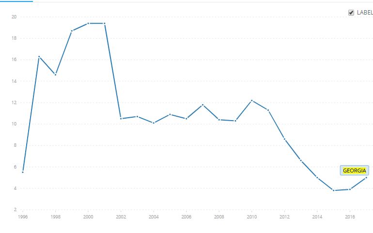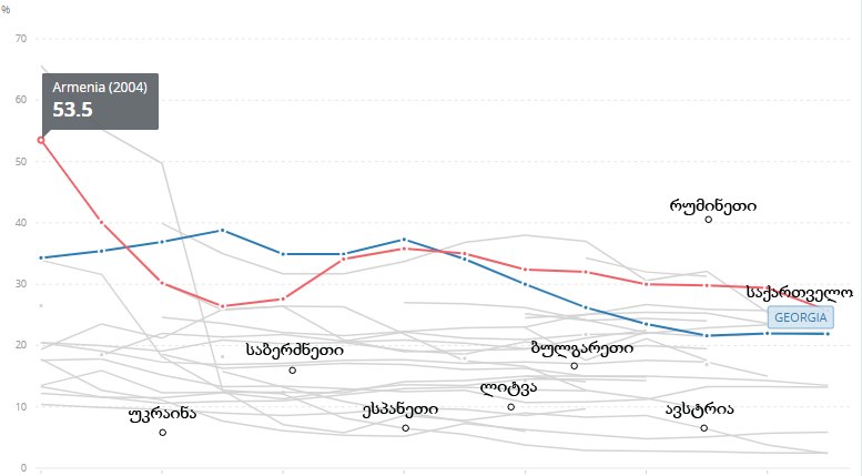 ამ მონაცემით საქართველოზე ცუდ მდგომარეობაში ევროპაში მხოლოდ რუმინეთია, სადაც იგივე მაჩვენებელი 5.7%-ია.