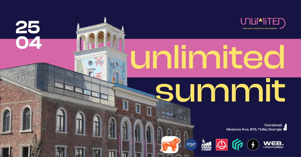 საქართველოში პირველად, ყველაზე მასშტაბური „Unlimited Summit“ გაიმართება, რომელიც ერთ სივრცეში გააერთიანებს თავისუფალ პროფესიონალებს (Freelancers), ინოვატორებსა (Startupers) და ბიზნესის შემქმნელებს (Entrepreneurs). ღონისძიებას 25 აპრილს საერთო სამუშაო სივრცე „კომბინატი“ (მოსკოვის გამზირი, #13) უმასპინძლებს, რომელიც ერთ-ერთი ორგანიზატორიცაა. „Unlimited Summit“-ზე 40-მდე ექსპერტი გაუზიარებს საკუთარ გამოცდილებას მათ, ვინც ციფრულ ეპოქაში მომავლის შექმნით არის დაინტერესებული.