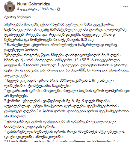 ექიმი აღნიშნავს, რომ ნუნუ გობრონიძის მიერ მისი სახელით გავრცელებული ინფორმაცია მცდარია.