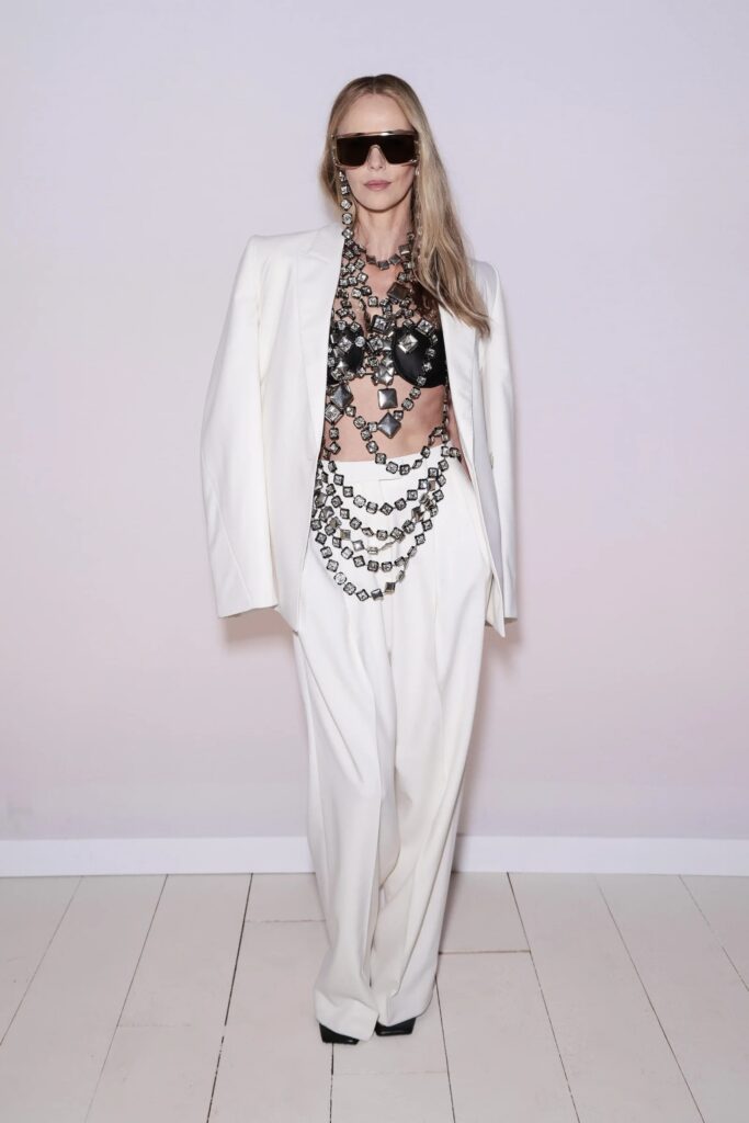 შარლიზ ტერონი ძვირფასი ქვებით მორთული ზედით გამოჩნდა – 50 წლის ვარსკვლავი „ჟივენშის” ჩვენებას დაესწრო