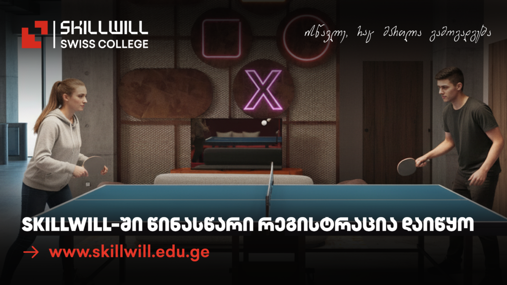Skillwill-ის კოლეჯში წინასწარი რეგისტრაცია უკვე დაწყებულია. აირჩიე შენთვის სასურველი მიმართულება და ისწავლე თანამედროვე გარემოში, სადაც თეორია პირველივე დღიდან პრაქტიკად იქცევა.