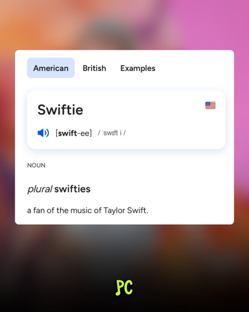 ტეილორ სვიფტის მუსიკის თაყვანისმცემელი – ლექსიკონში სიტყვა შემდეგნაირად არის განმარტებული.