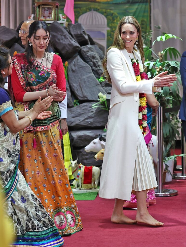 ღონისძიებისთვის პრინცესამ ელეგანტური „რალფ ლორენის” პლისე თეთრი კაბა აირჩია, დახვეწილი სილუეტით. სტილი მან დაასრულა სპეციალურად შეკერილი პალტოთი, რომლის ავტორიც დიზაინერი კრის კერია. აღსანიშნავია, რომ ეს პალტო პრინცესას უკვე ერთხელ ჰქონდა მორგებული, 2023 წლის საშობაო მსახურებაზე. უელსის პრინცესა ხშირად ესწრება მსგავს ღონისძიებებს, რითაც ბრიტანეთის მრავალფეროვან კულტურულ საზოგადოებას მხარდაჭერას უცხადებს.