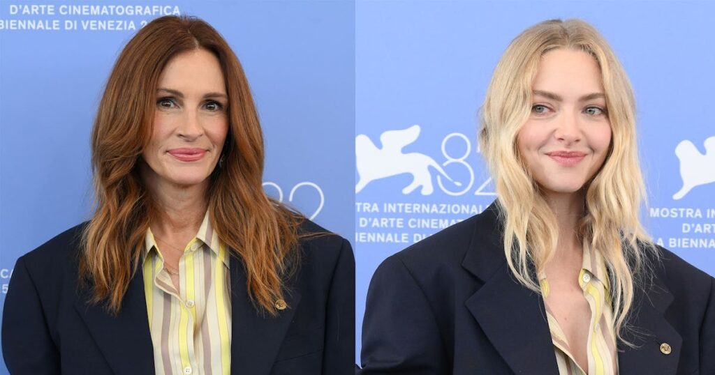 ფოტოობიექტივის წინაშე მოხვდნენ ჯულია რობერტსი და ამანდა სეიფრიდი, რომლებიც წითელ ხალიჩაზე ერთნაირი „ვერსაჩეს“ „ლუქებით“ გამოჩნდნენ.