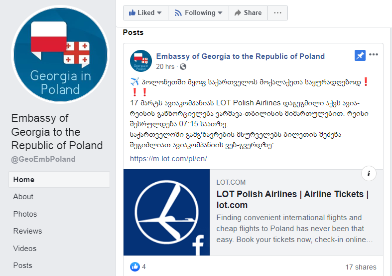 ინფორმაცია საელჩომ საკუთარ ფეისბუქ გვერდზე გამოაქვეყნა, სადაც აგრეთვე მითითებულია ცხელი ხაზის ნომრები.